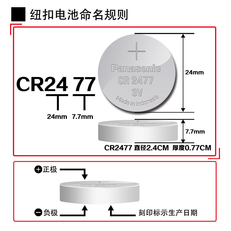 Panasonic CR2477 button battery 3V lithium battery imported T-shaped instrumentation LD2477 rice cooker electronic clock Bluetooth positioning card Desheng radio CR247