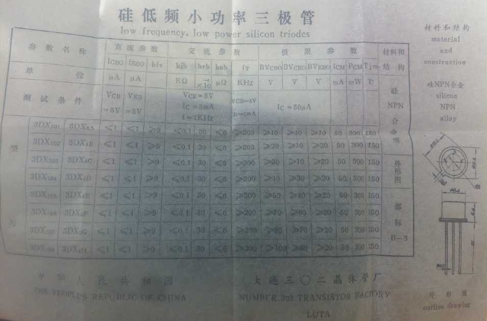 3DX105 Low-frequency amplification, low-speed switching and power supply voltage regulator, low-frequency low-power triode