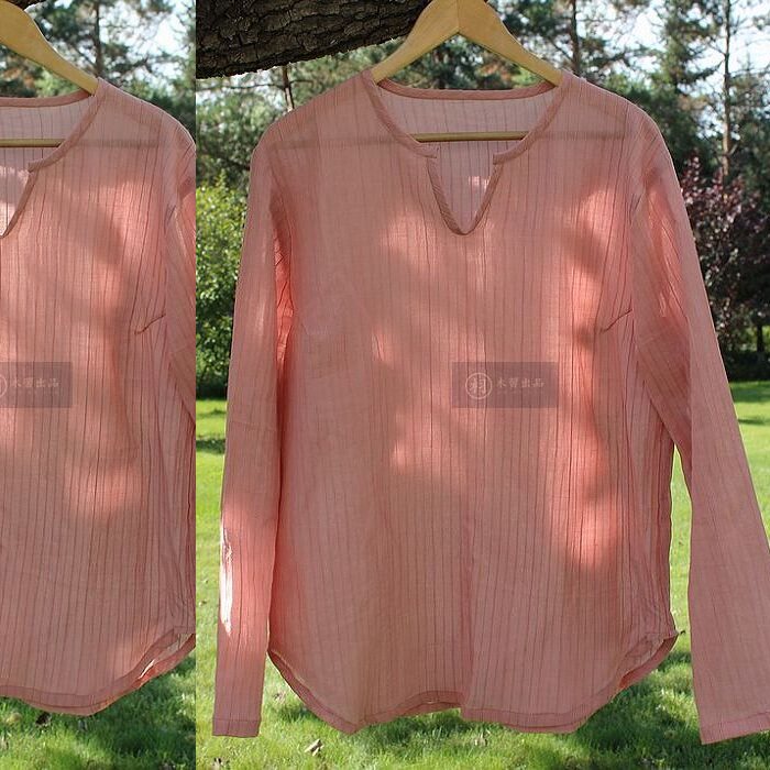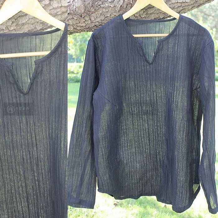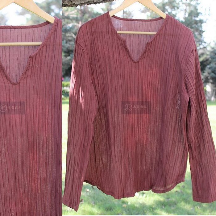 Precipitation _ _ His Chinese style original Chinese men's linen shirt Long-sleeved shirt Men's large size literature and art