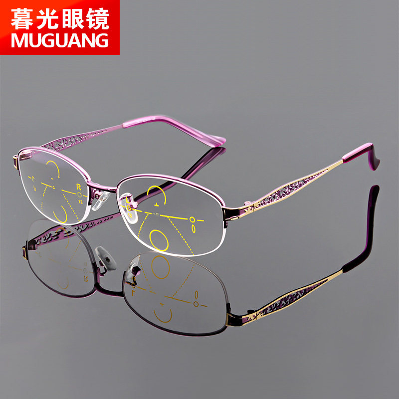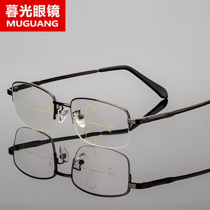 Men and women's progressive multi-focus old flower glasses look near and far and half-frame 350400 degrees far view old light glasses