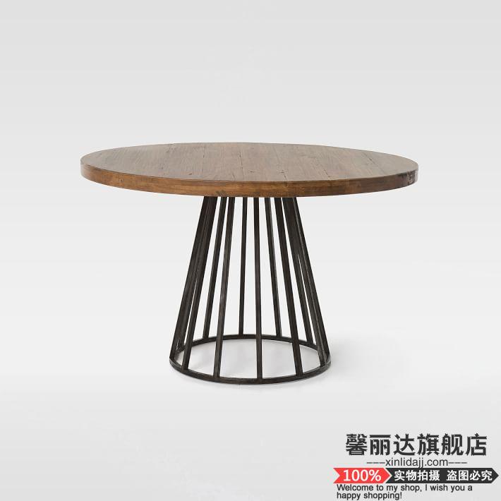 American retro iron art solid wood dining table and chairs combination small round table dining table large round table European style solid wood table and chairs 4 6 people