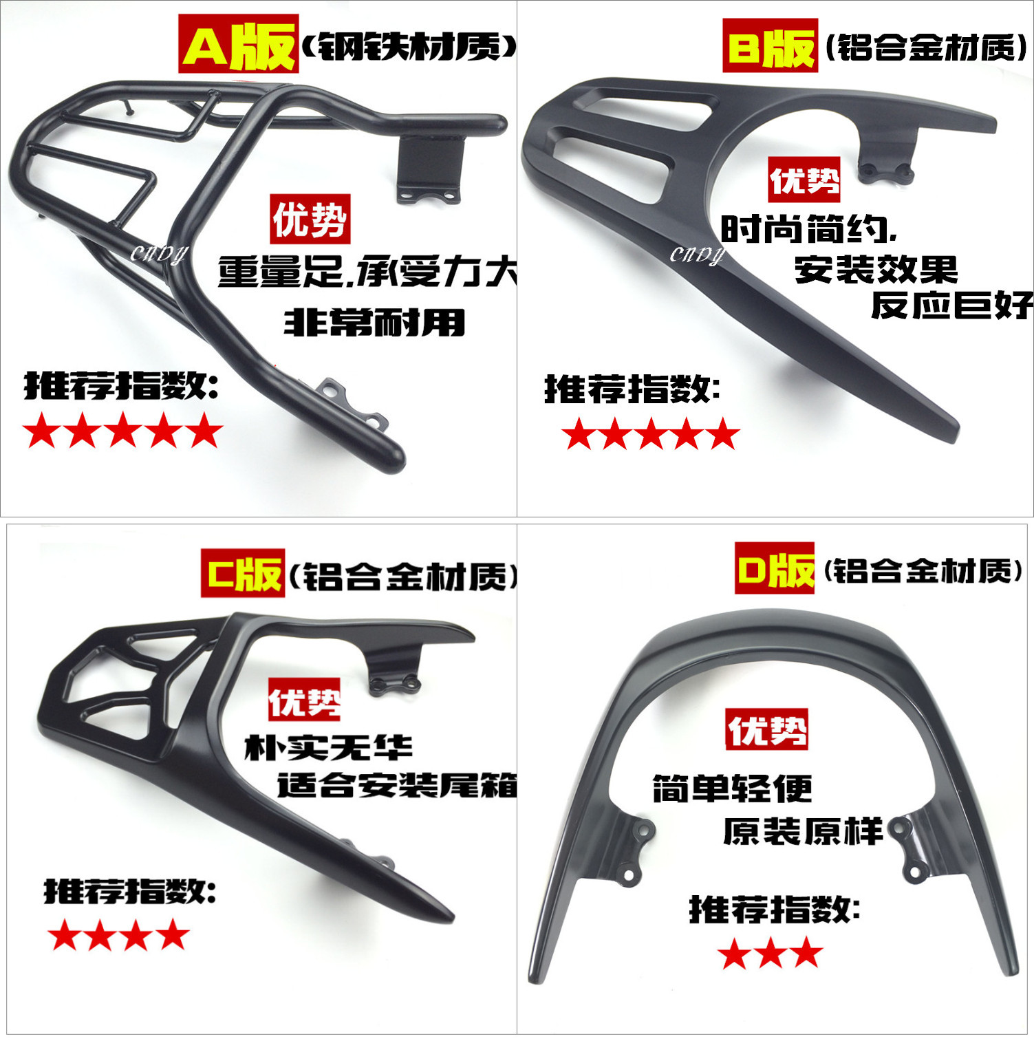 A version of JOGi rear shelf B version of JOGi rear shelf C version of JOGi rear shelf D version of JOGi rear shelf New Fuxi 125 thickened iron shelf New Fuxi 125 aluminum shelf