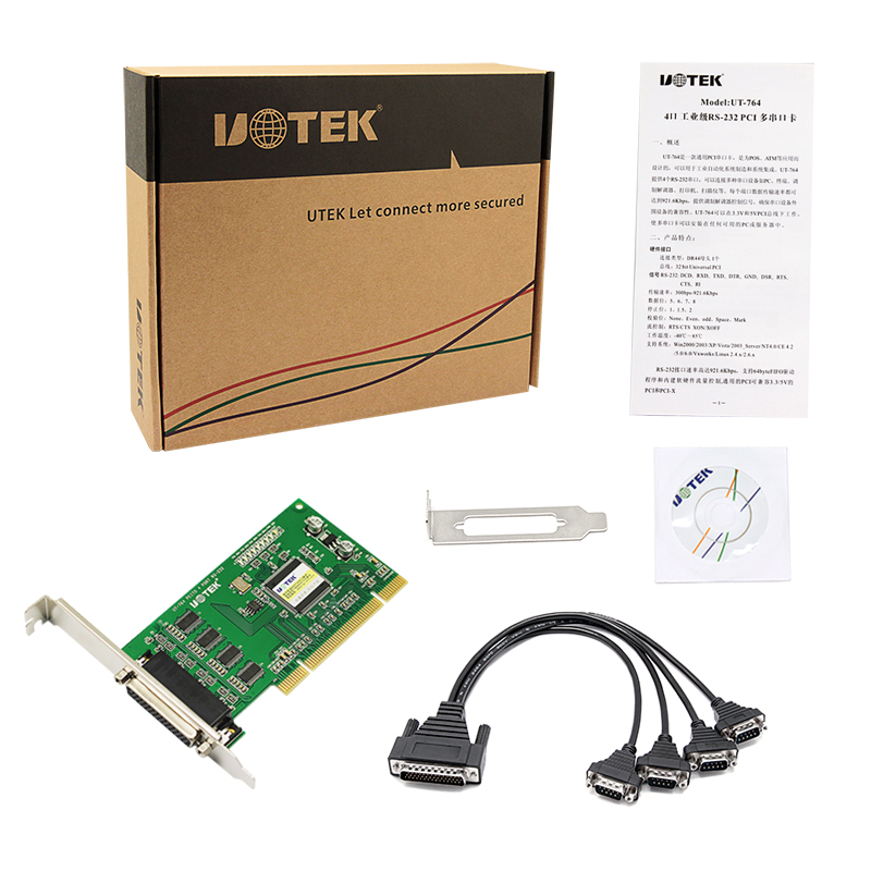 Utai UT-764 4 mouth industrial grade RS232 transfer PCI high speed multi-string card PCI transfer RS232 serial port