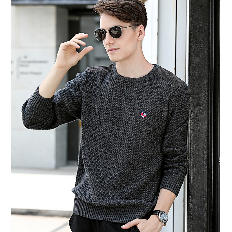 Men's bottoming top sweater men's autumn and winter loose large size knitted sweater winter thickened men's round neck sweater