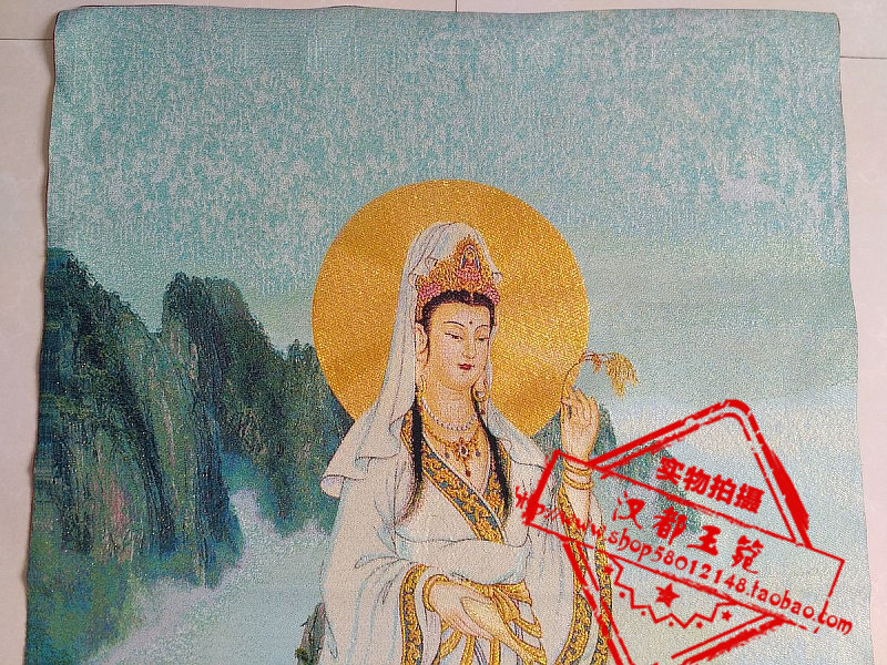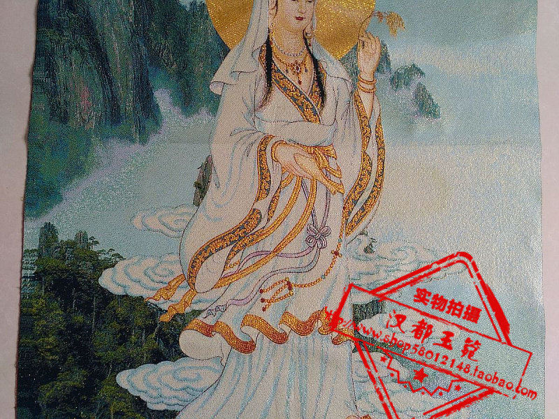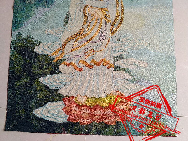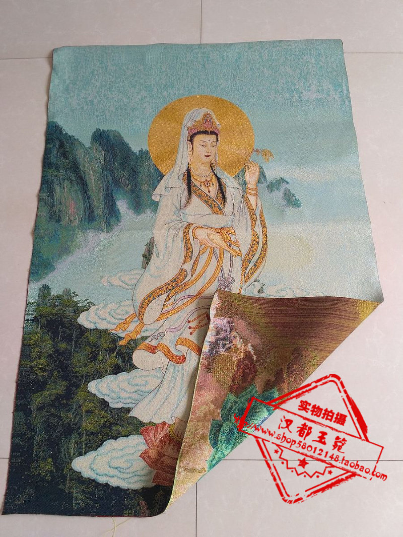 Tang Card Embroidered Figure Portrait Brocade Silk Embroidered Golden Silk Embroidery Ruyi Guanyin Bodhisattva Statue
