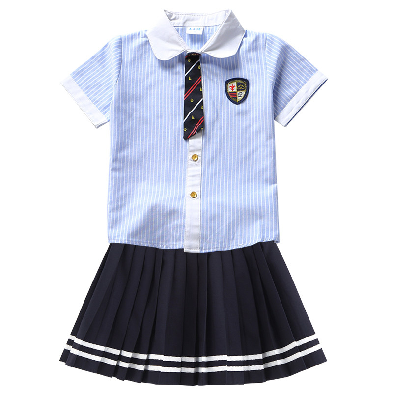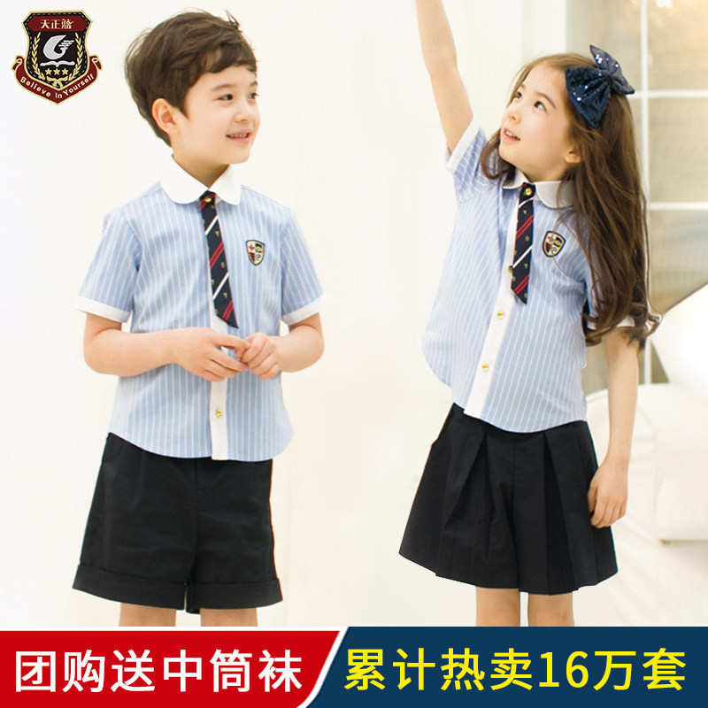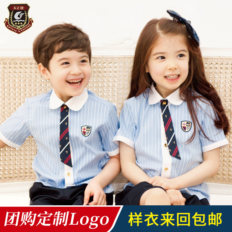 Kindergarten garden clothes summer wear British style short sleeves children's class clothes custom primary school uniform summer set graduation photo