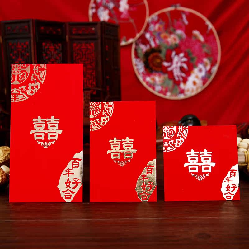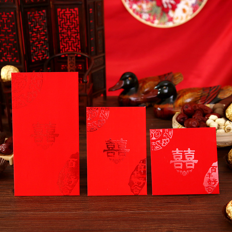 New Hard Cardboard Thick Red Packet Grass Body Happy Character Hotel thousands of Yuan Red Envelopes Wedding Supplies Thickened to Seal Wedding Celebration