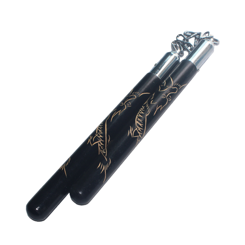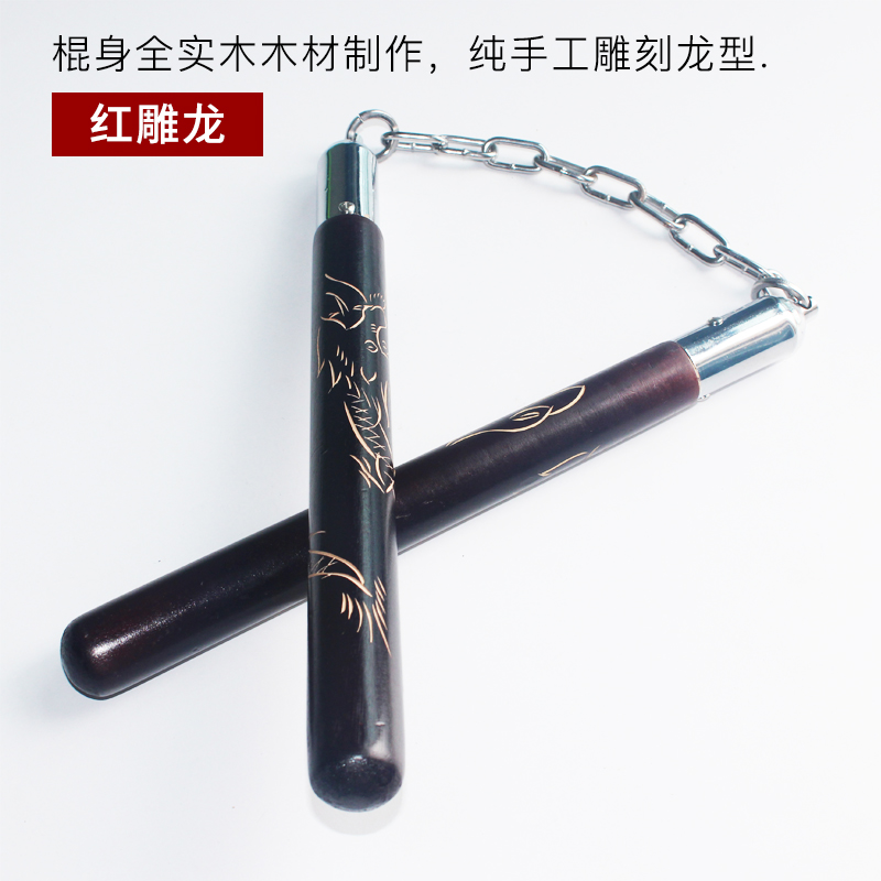 Red solid wood carved dragon nunchaku black solid wood carved dragon nunchaku