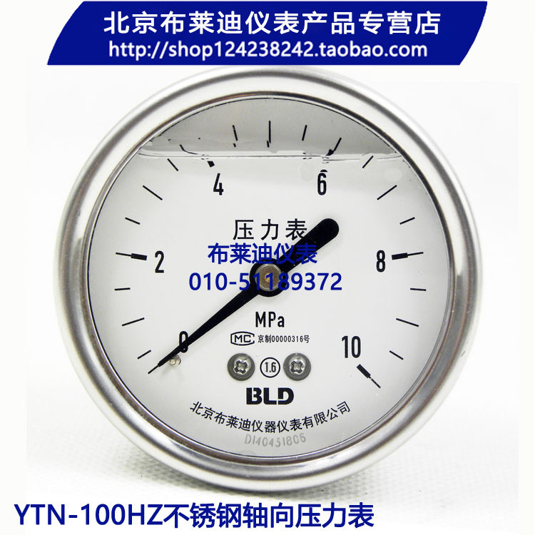 Brady all stainless steel axial shock resistant pressure gauge YTHN -100 BO water gas-liquid pressure gauge