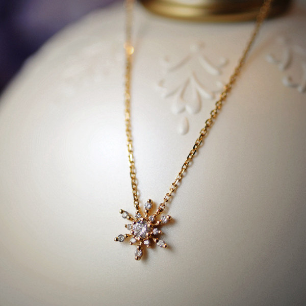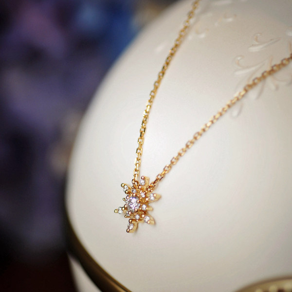 "Weijia" Lingxiao special cabinet shiny natural diamond 18 Snow flower pendant 18K gold necklace