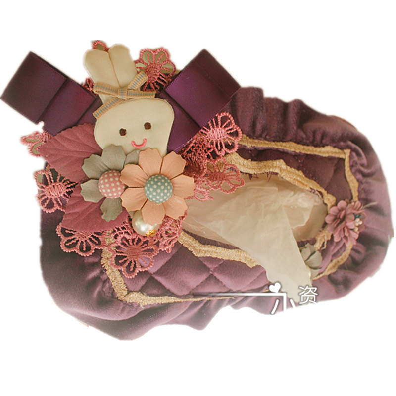 Vehicular paper towel cover cloth art paper towel box for hanging visor lace upscale creative toilet paper box Han version Dual use