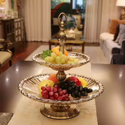 European-style fruit plate living room coffee table decoration soft decoration glass double-layer fruit plate creative luxury dried fruit basin household