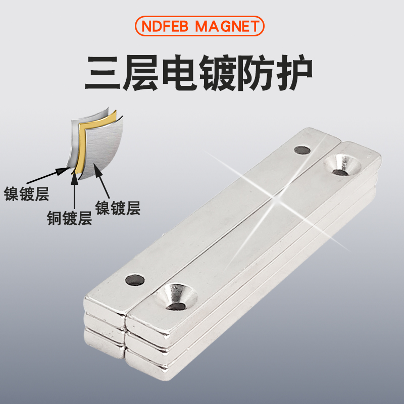 Rectangular with hole strong magnet F50-100mm powerful rubidium Ru neodymium magnet stone square bar magnet steel