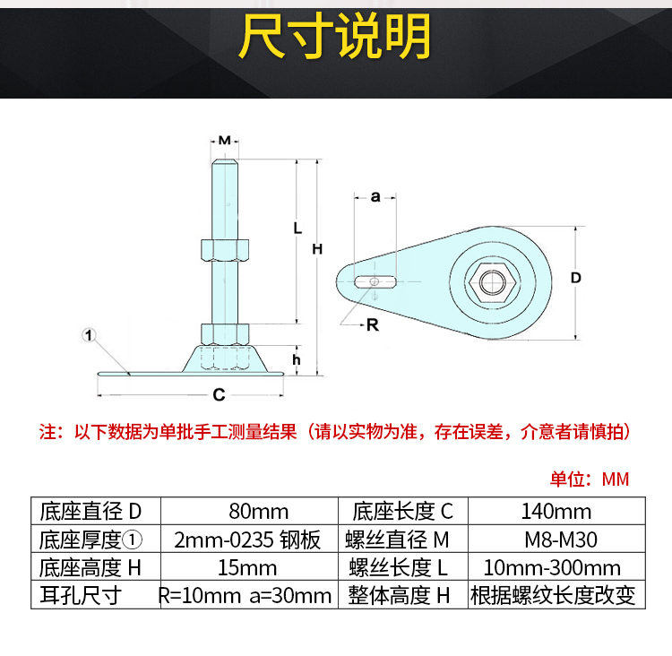 2mm fixed foot CD water drop adjusting foot metal foot cup with ear foot screw long foot plate D80