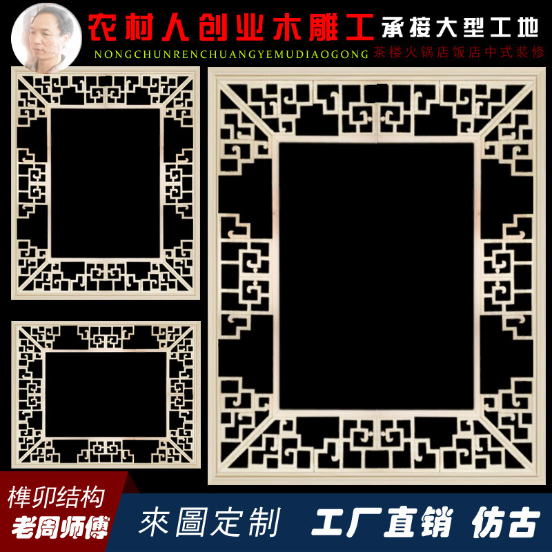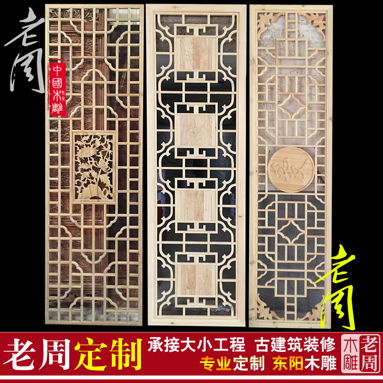 Chinese replication of ancient doors and windows frame solid wood flower hollow opening screen decoration and decoration of Dongyang wood carvings