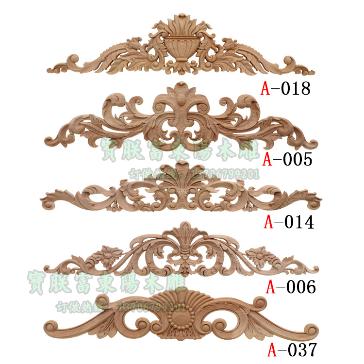 Eurostyle Decorative Wood Sculpture Applique solid wood applique with floro-style solid wood carved slices Dongyang wood carved European style wood applique