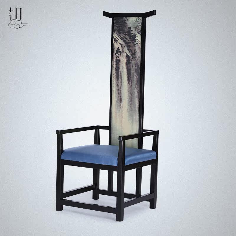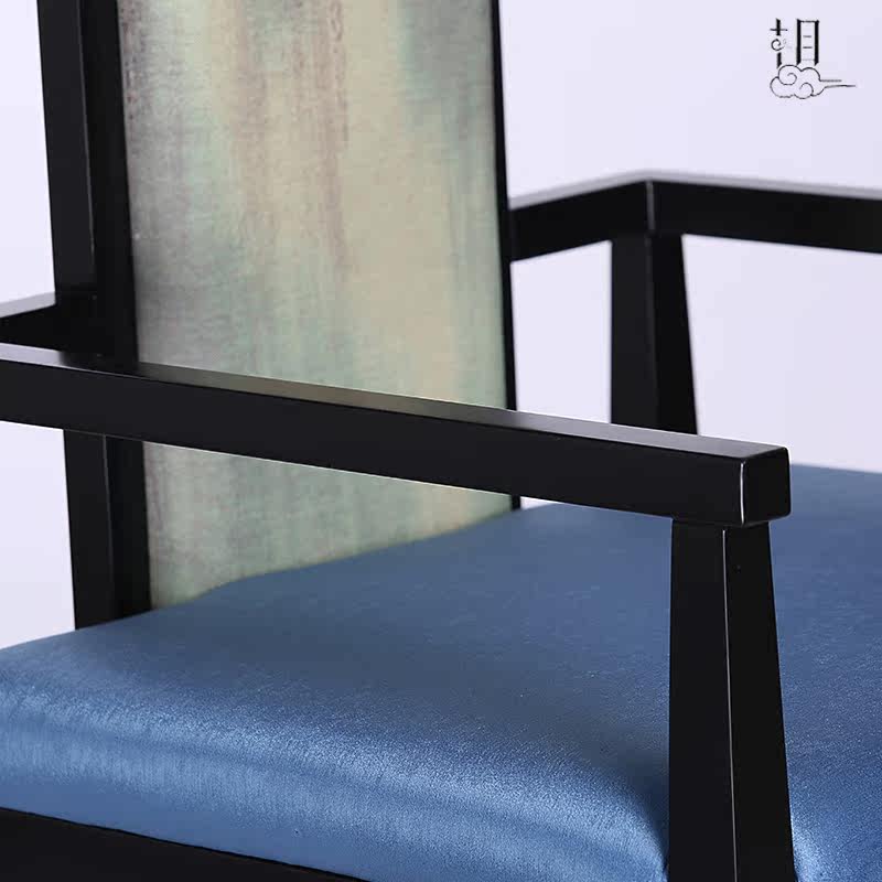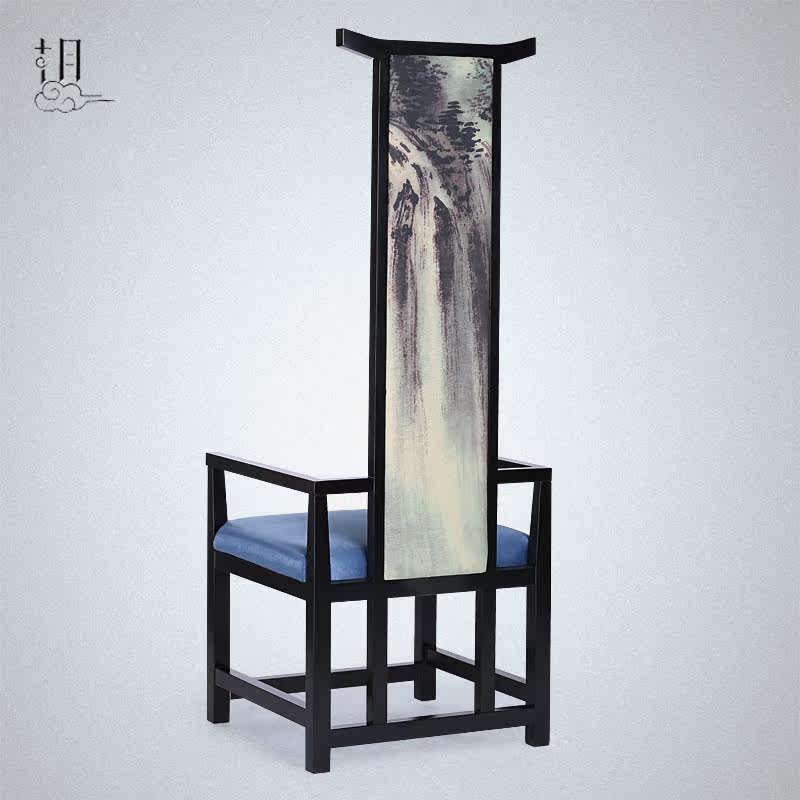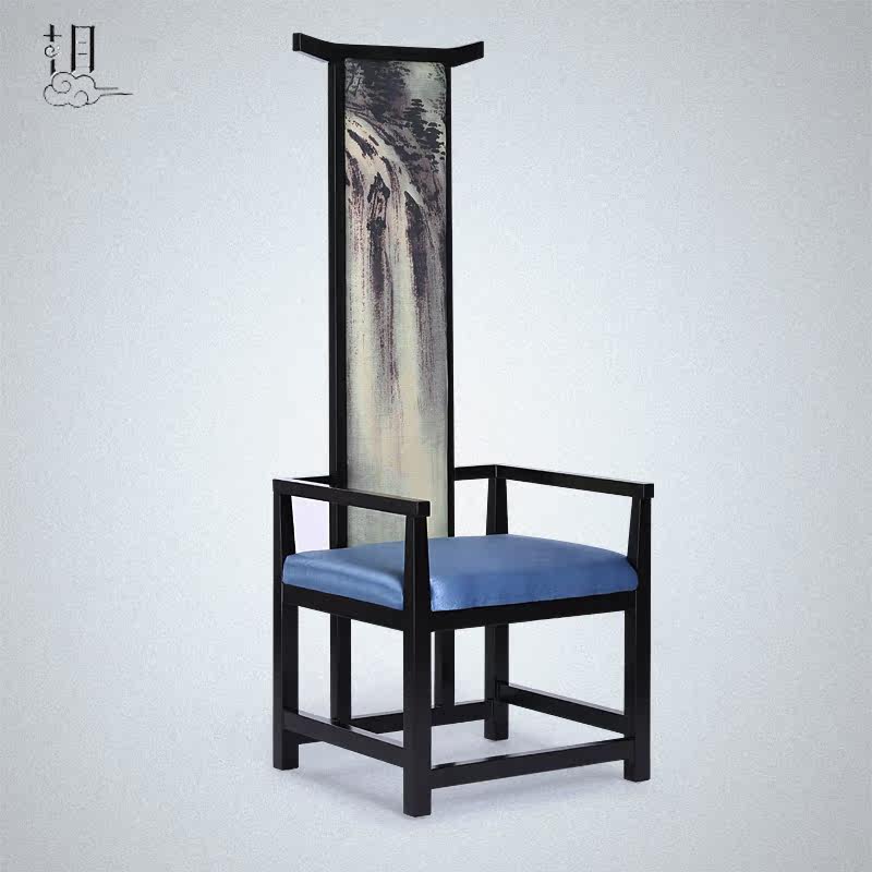 New Chinese High Back Chair Image Chair Hotel Clubhouse Solid Wood Cloth Art Armrest Backrest Dining Chair Single Chair Furniture-Taobao