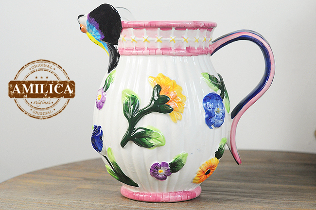 External single ABC flower butterfly hand-painted ceramic reliquette flower pot vase flower illustrator European-style field decoration Cracked Glaze-Taobao