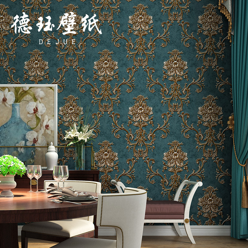 3D three-dimensional relief retro European wallpaper luxury bedroom living room TV wall background wall paper household non-woven fabric