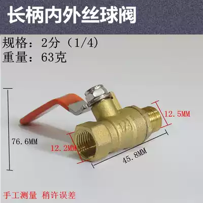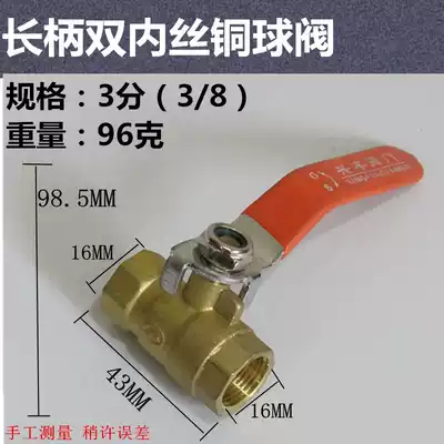 Copper valve thickened double inner wire brass ball valve inner and outer wire copper ball valve double outer wire 2 points 3 points long handle small ball valve