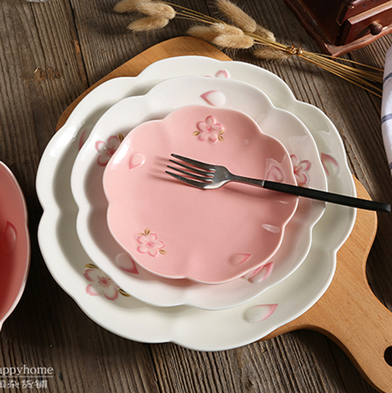 Cherry pollen small plate (diameter 15CM), cherry pollen medium plate (diameter 20CM), cherry pollen large plate (diameter 25CM, cherry blossom white small plate (diameter 15CM), cherry blossom white medium plate (diameter 2