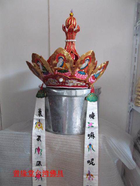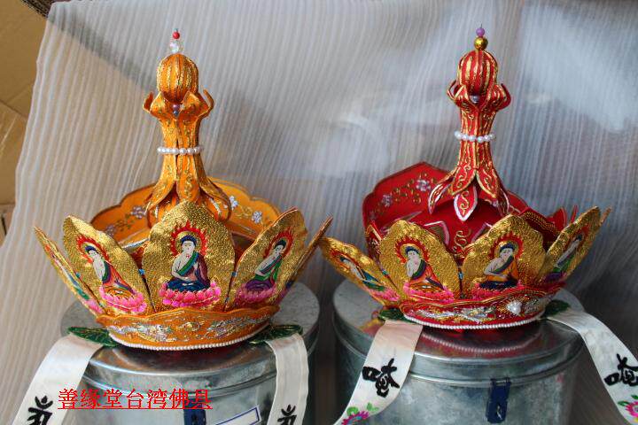 Bilohat Five Buddha Crown Su Embroidered handmade Contiguous Luhat Monk Hat Red Color) Master's hat Five Buddha hat