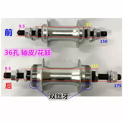 36-hole flower drum axle drum Bicycle front and rear flower drum front and rear axle leather Front wheel drum Rear wheel drum shaft leather 0 3