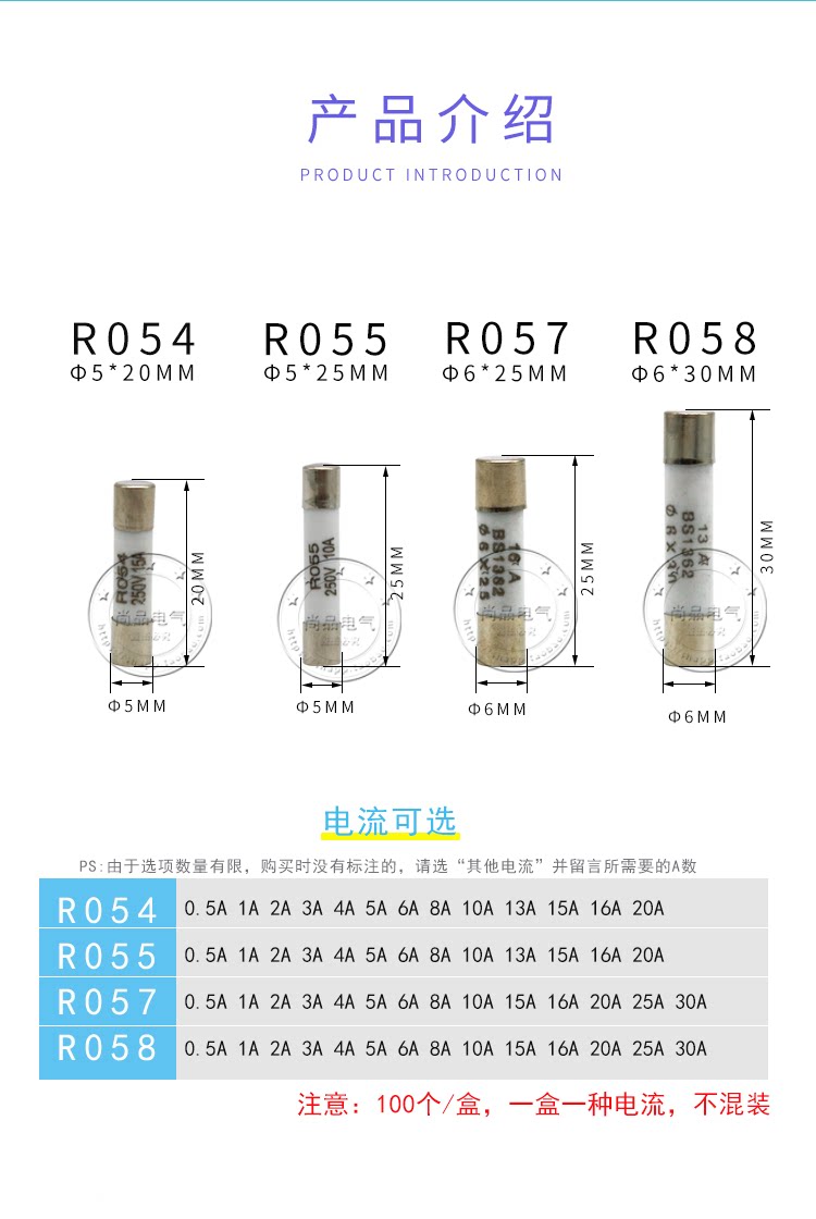 R055 Ceramic Fuse Tube RO55 Fuse Core 5*25 5x25MM0.5A1A3A6A8A10A R0574