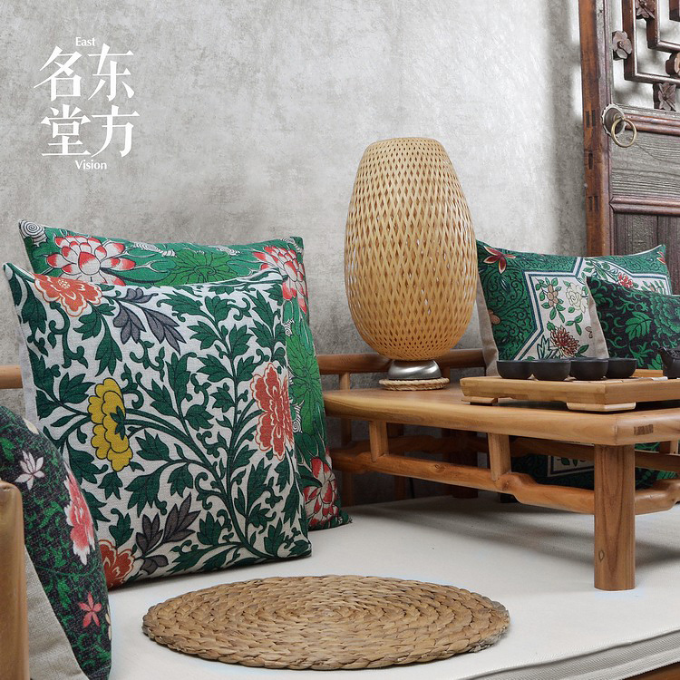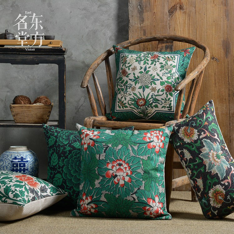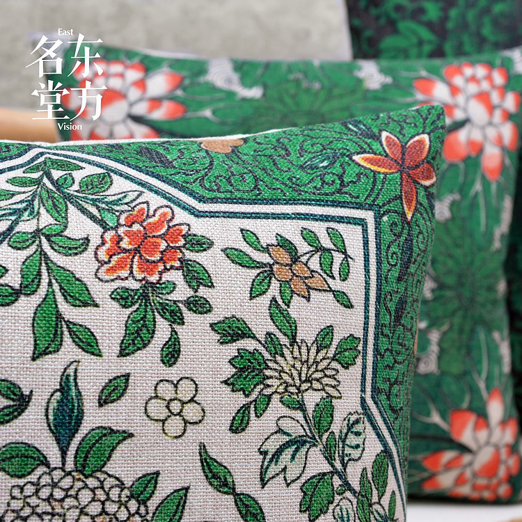 Modern New Chinese Fields Garden Green Oriental Cloth sofa cushions leaning on the bag office waist leans against pillowcase