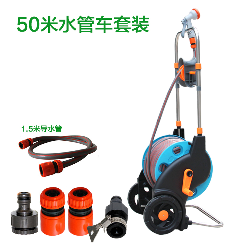 Telescopic water pipe truck 50 meters hose set water wheel frame water pipe truck car washer car wash garden forest tools