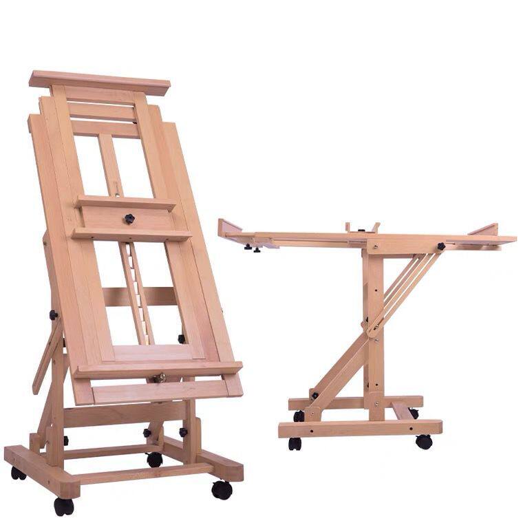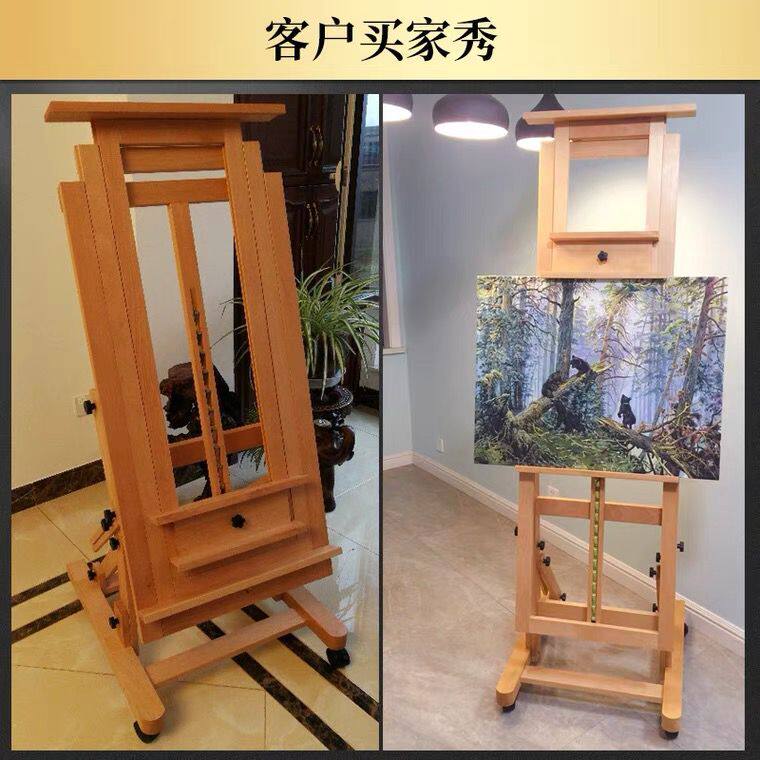 Horse racing special Beech flat and vertical dual-use easel Oil painting frame Watercolor painting frame Chinese painting frame with wheels floor-to-ceiling large easel