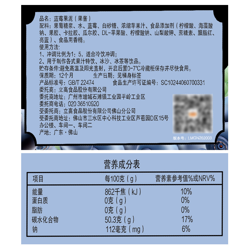 New Senny blueberry fruit puree 1360g New Sennini fruit puree jam Bubble Drink Sand Iced Juice Raw Material