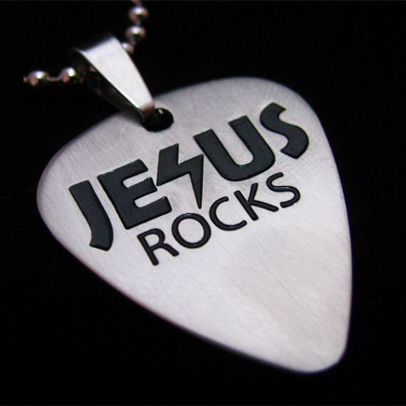 Woshion Titanium Steel Personality Rock Guitar Pick Necklace JESUS ROCKS Jesus is the Rock