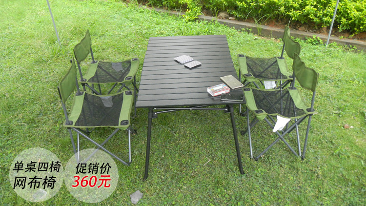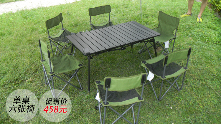 Portable outdoor folding table and chair kit beach table and chair combination self-driving picnic barbecue table and chair