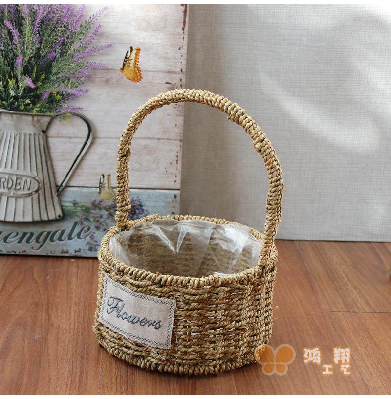 Hand-made flower simulation flower rectangular handheld cloth basket natural plant grass wrapped basket containing basket