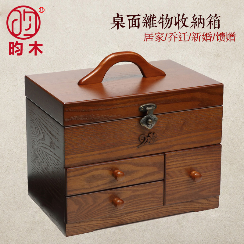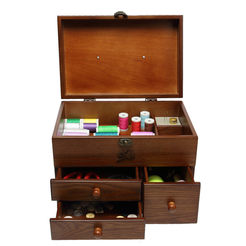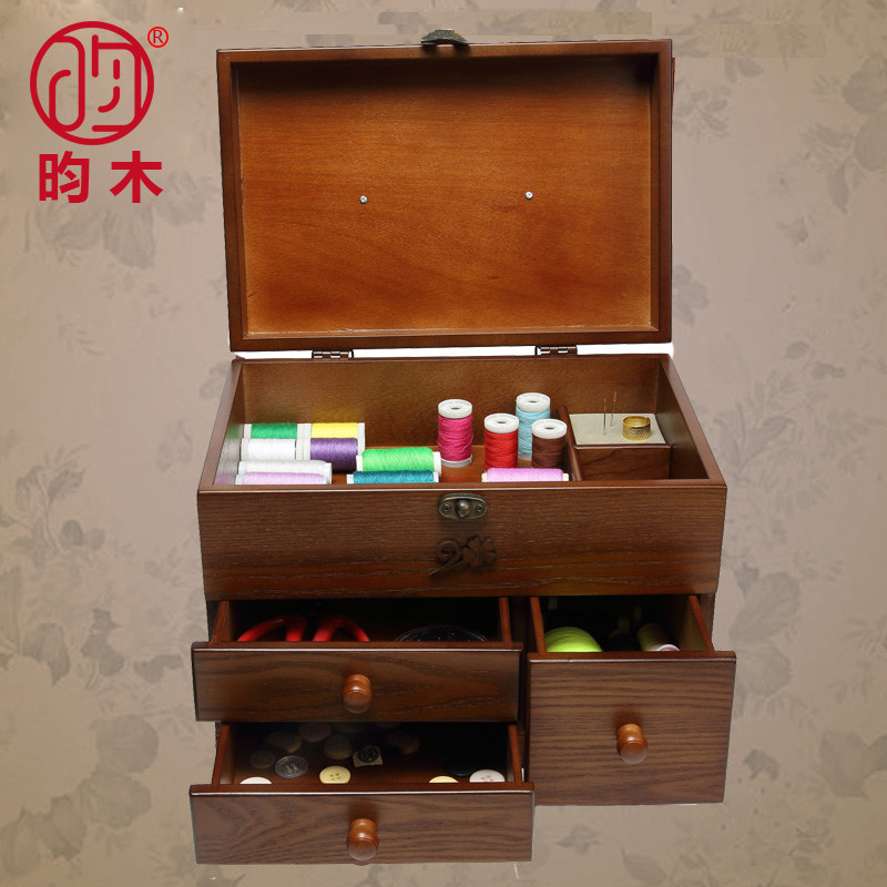 Wooden needlework box Desktop storage box Household high-grade large cross-stitch tools Hand-stitched thread wooden box dowry