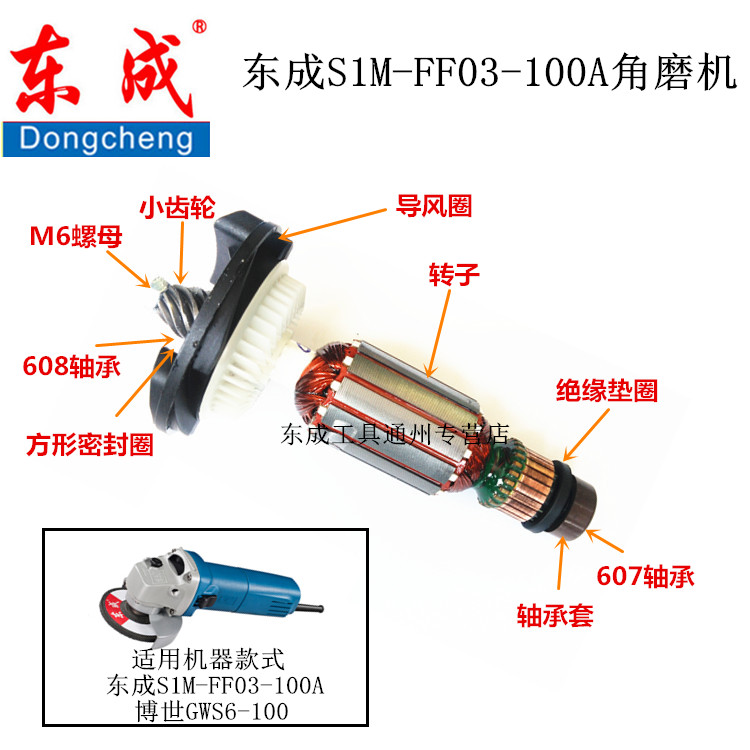 Dongcheng DCA S1M-FF03-100A Angle Mill Original Factory Accessories Rotor Stator Switch Carbon Brush Gears