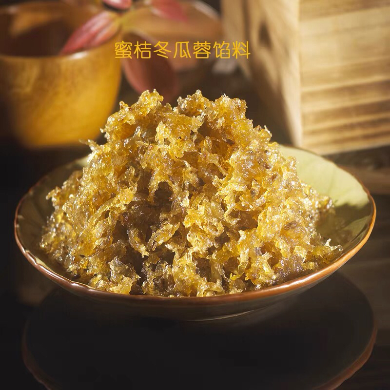 Winter melon puree (winter melon white sugar, maltose, edible vegetable oil, except oil sugar, the content of winter melon puree in the bait material is 100%), wheat flour, water glucose syrup, eggs, edible vegetable oil, edible alkaline water (water carbonated)