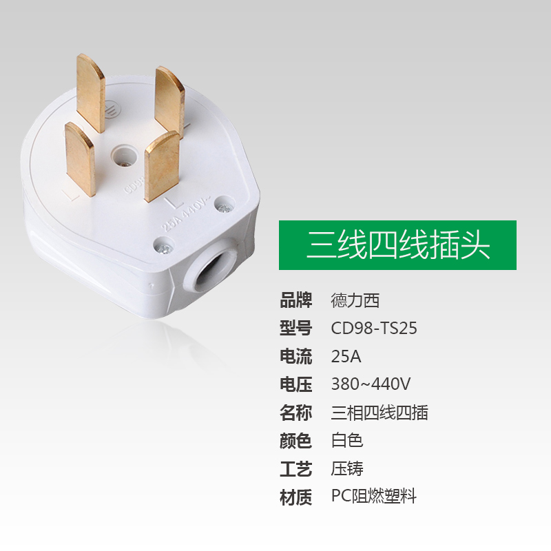 Delixi three-phase four-wire plug socket 380v four-hole 25A three-phase four-wire four-plug power plug