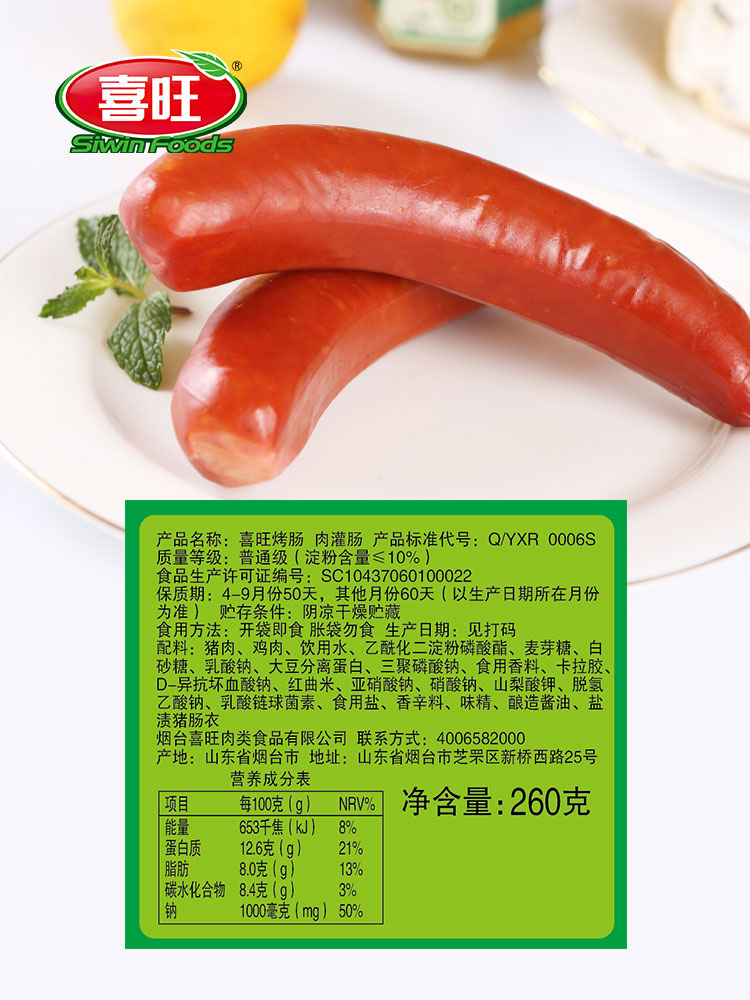 Xiwang grilled sausage 260g*3 bags special small sausage ham sausage Chinese hot dog Shandong red sausage vacuum packaged food