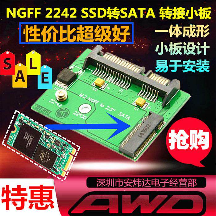 2242M 2 SSD solid state drive NGFF to SATA serial port 1 8 half-height adapter card box board port