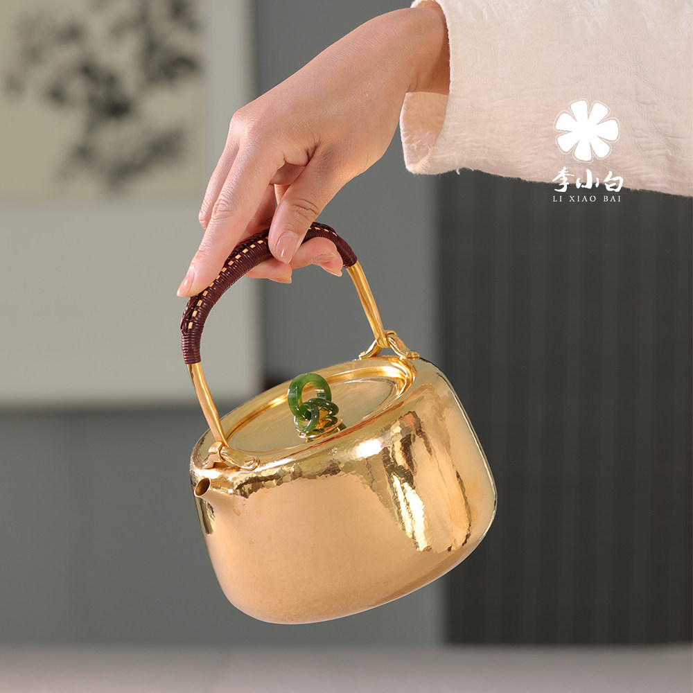 Li Xiao platinum pot pure gold 9999 pure handmade kettle pure gold gold pot teapot gold pot