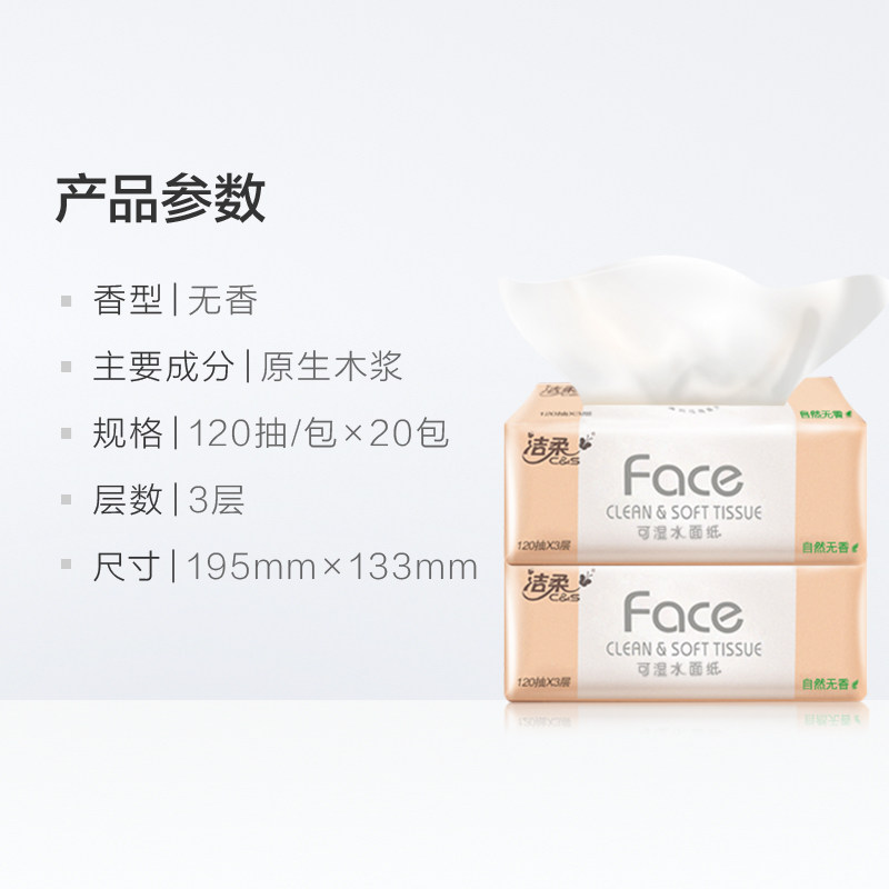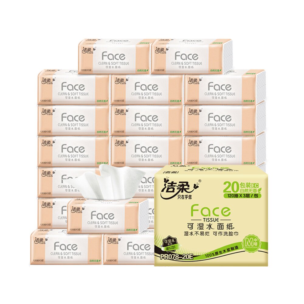 Clean Face removable toilet paper Wet surface paper whole box hand-wiping toilet paper M size 120 pumping 20 packs of household affordable packaging