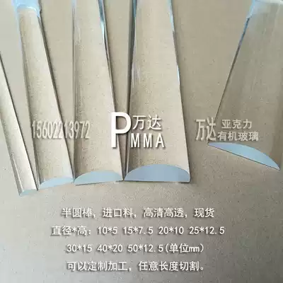 Transparent Plexiglass D-shaped rod Acrylic semicircular rod Diameter width 40mm 30mm 25mm 20mm 10mm