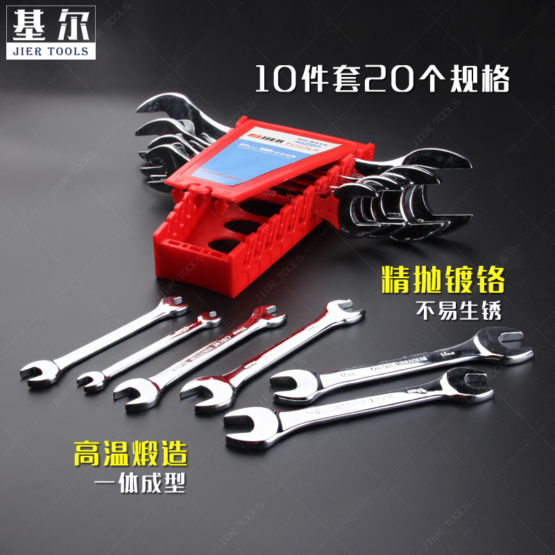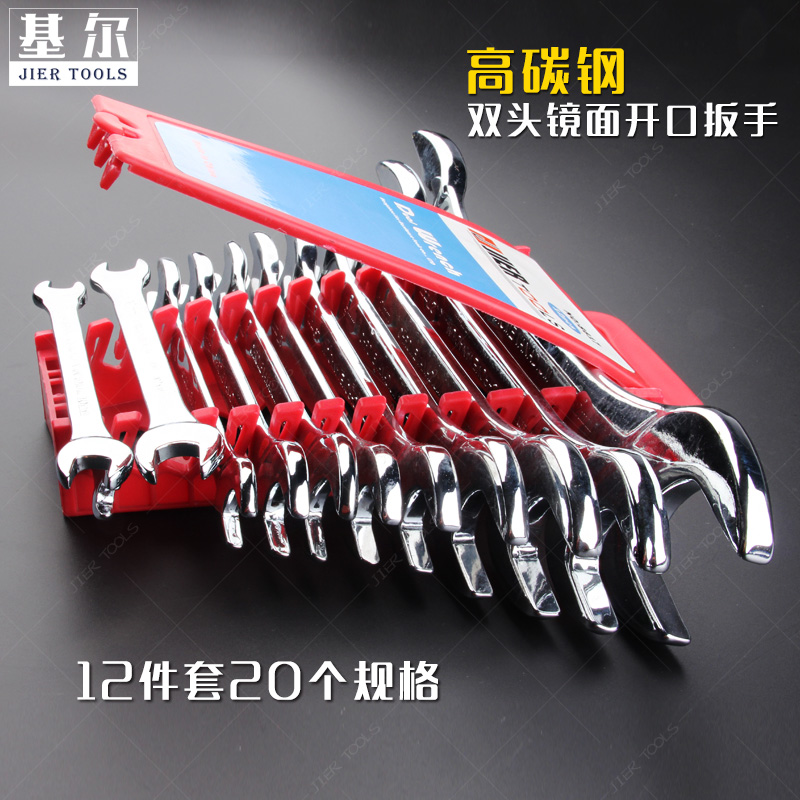 JJIER Kiel quick wrench double head opening wrench set of steam repairing five gold tool plastic clip portable 12 pieces