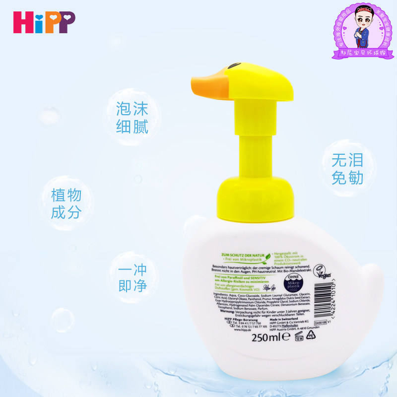 German Hipp Hipp Facial Cleanser Duck Infant Child Foam Face Wash Hand Sanitizer 250ml No Tears