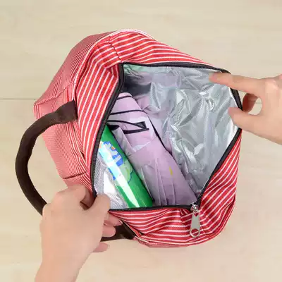 Aluminum foil insulated bento box bag Bento bag waterproof cold portable portable small bag square lunch storage bag large stripes