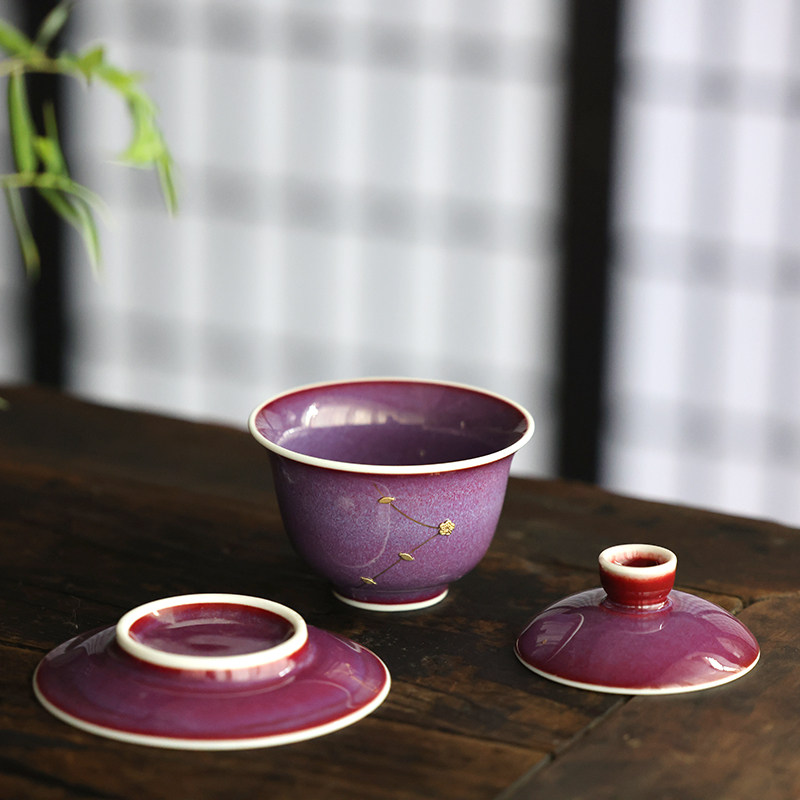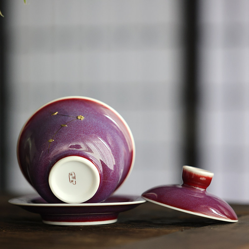 High-end Jun Kiln Large Number Gay Bowl Jun Porcelain Kung Fu Tea Tea Tea Cup Three Talents Cup Tea Preparation Bubble Tea Cup Ceramic Tea Bowl