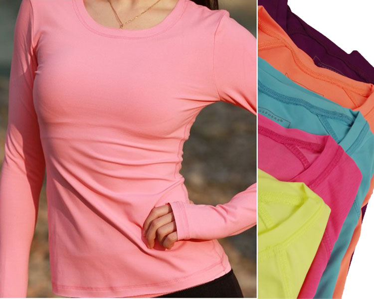 Foreign trade original single women's quick-drying elastic slim fit moisture wicking round neck sports yoga fitness long-sleeved T-shirt S574