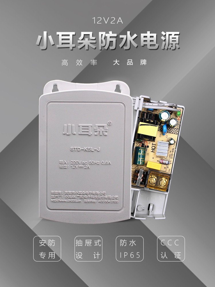 Dongguan small ear STD-K5L-J monitoring power supply 12V2A outdoor rainproof power supply monitoring adapter
